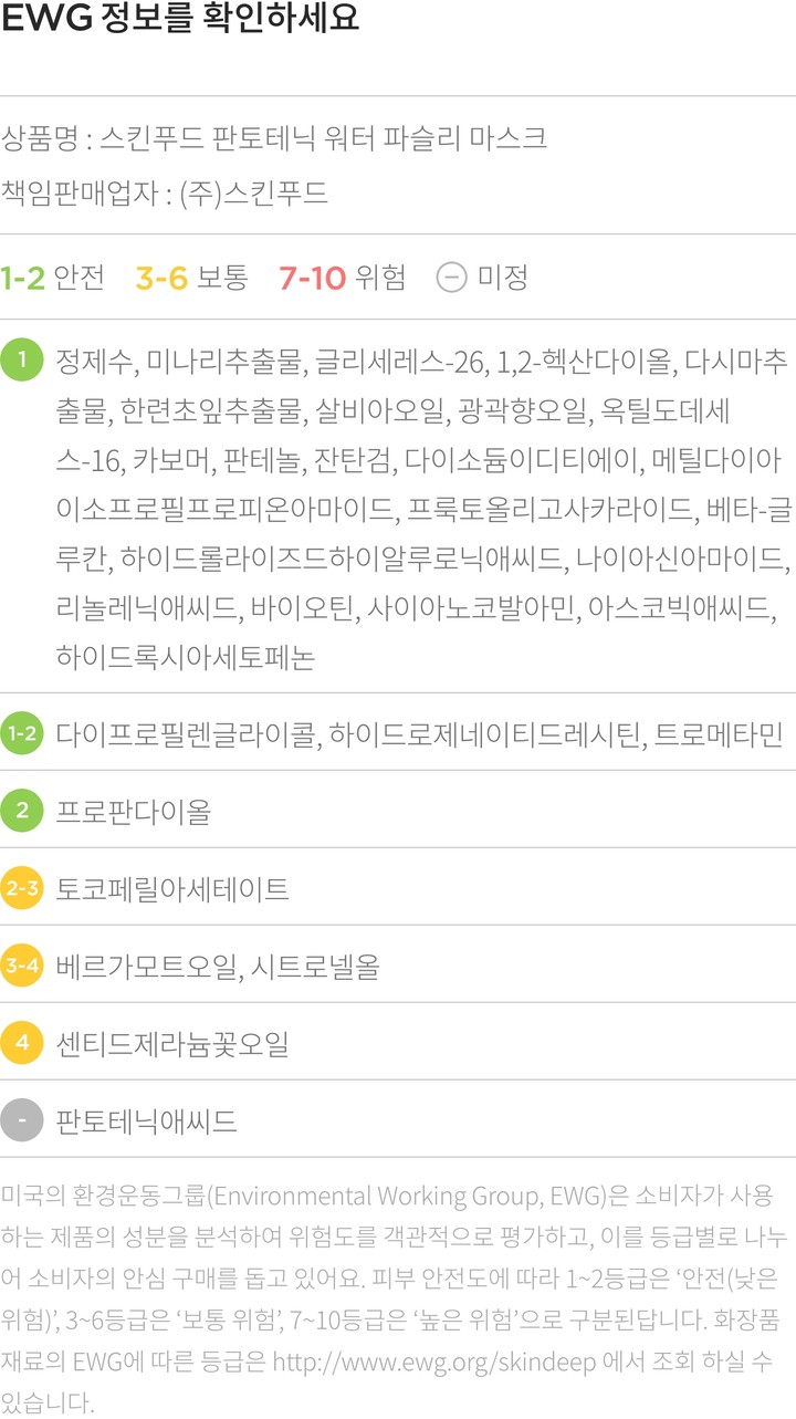 판토테닉 워터파슬리 마스크・ 개수:1세트(24mL X 10매입)