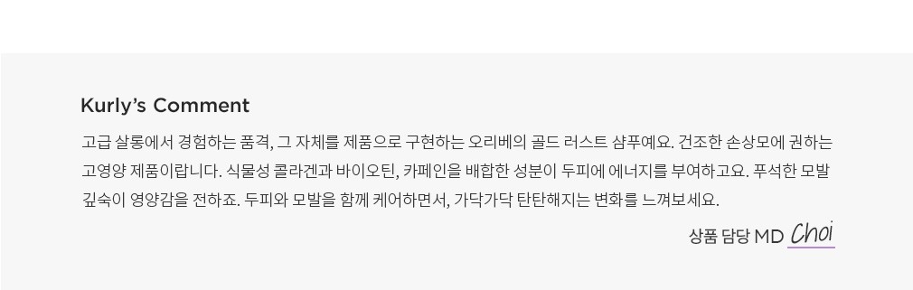 추천 루틴・ 손상 모발을 케어하는 오리베의 골드 러스트 라인을 함께 사용해보세요.