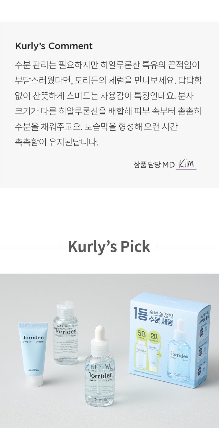 [토리든] 다이브인 저분자 히알루론산 세럼 40ml 기획 세트 (세럼 40ml+토너50ml+크림20ml)