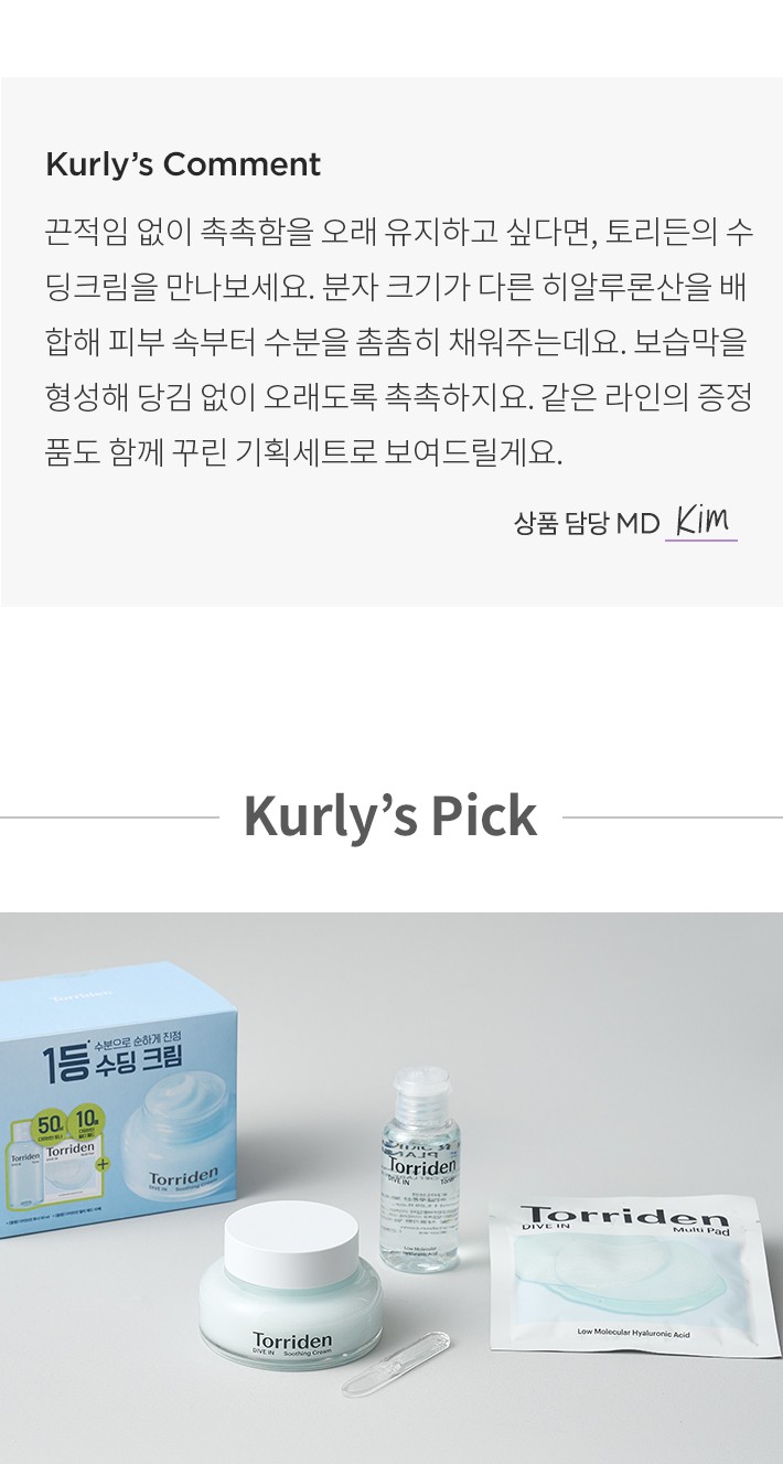 [토리든] 다이브인 저분자 히알루론산 수딩크림 80ml 기획 세트 (수딩크림80ml+토너50ml+멀티패드10매)