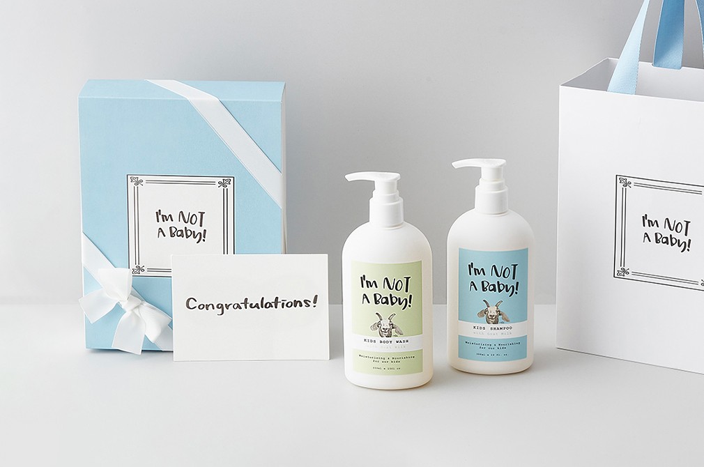 한창 자라나는 아이들을 위한 아임낫어베이비의 샴푸&바디워시 기프트 세트를 소개할게요. 베이비용 제품보다 세정력이 뛰어나지만,여전히 여린 아이들의 피부에 부드럽고 순하게 닿아요. 고트밀크를 함유해 풍부한 영양과 촉촉한 보습감을 선사한답니다. 달콤한 플로럴 프루티 향 덕분에 아이들도 즐겁게 샤워할 수 있을 거예요. 사랑스러운 패키지에 축하카드,쇼핑백까지 센스있게 꾸려 보내드리니 소중한 분에게 선물로 건네보세요.