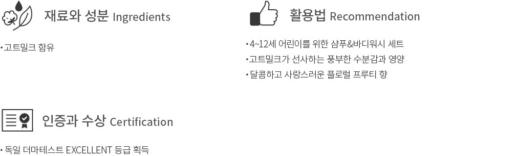 샴푸&바디워시 기프트 세트・ 구성:①고트밀트 키즈 샴푸,②고트밀트 키즈 바디워시