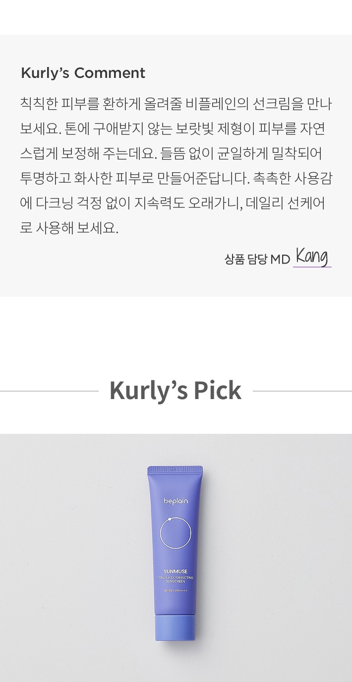 ・특징:SPF 50+,PA++++의 자외선 차단력을 가진 혼합자차 선크림입니다. 자주 덧발라도 들뜸 없이 피부 톤을 맑고 화사하게 보정해 줘요.