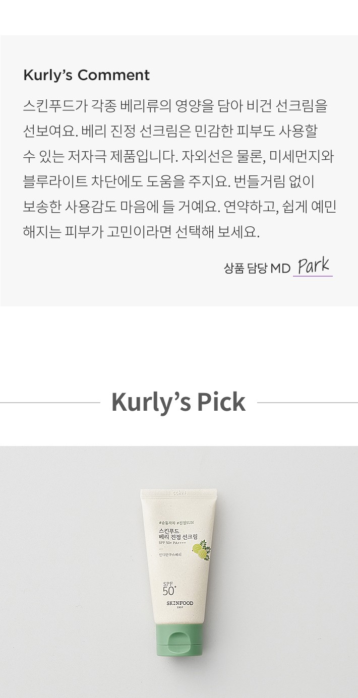 ・ 특징:인디안 구스 베리 추출물을 함유한 SPF 50+,PA++++의 무기자차 비건 선크림이에요. 유분기 없이 보송하게 마무리됩니다.