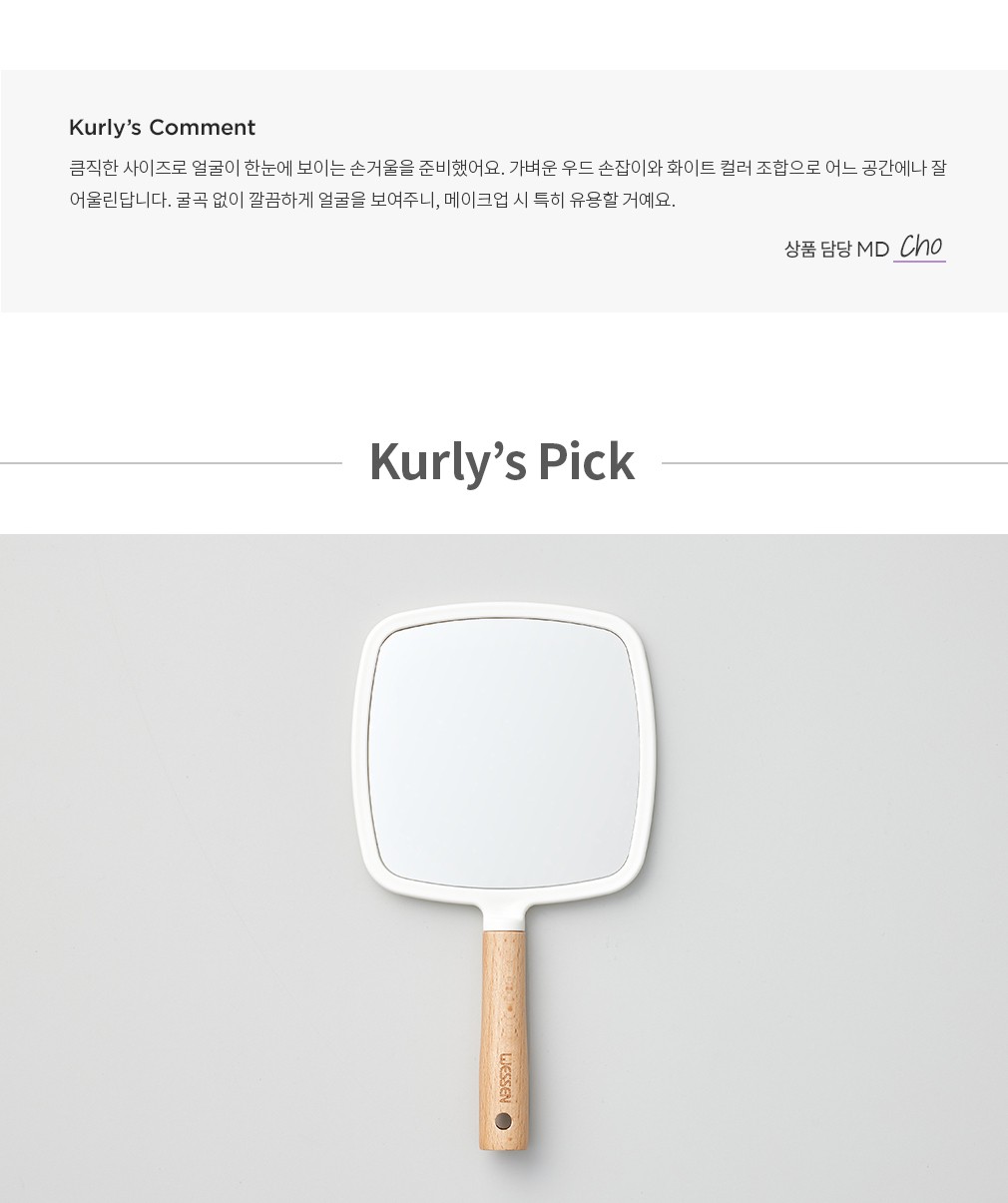 ・ 특징:큼직한 사이즈로 얼굴 전체를 굴곡 없이 보여주는 손거울입니다.
