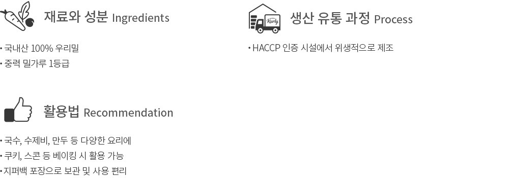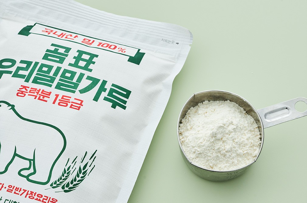 곰표는 70년 동안 이어온 역사를 재해석해,레트로한 무드를 살린 제품들을 선보이고 있지요. 이번에는 대한제분의 오랜 역사와 노하우를 살려 만든 우리밀 밀가루를 준비했어요. 보존료 등 다른 첨가물 없이 오직 우리 땅에서 나고 자란 국내산 밀로만 담아냈답니다. 가정에서 넉넉히 사용하기 좋은 900g 용량으로 준비했으니,다양한 부침 요리에 고루 사용해 보세요.
