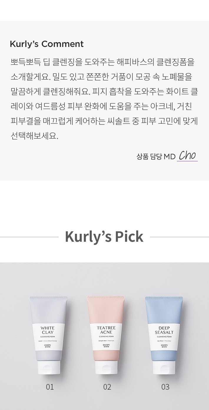 [해피바스] 폼클렌징 약알칼리성 모공 여드름 클렌징폼 150g 3종 (택1)