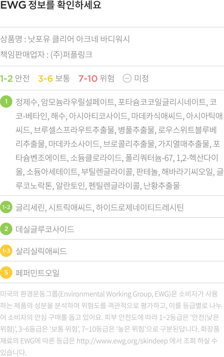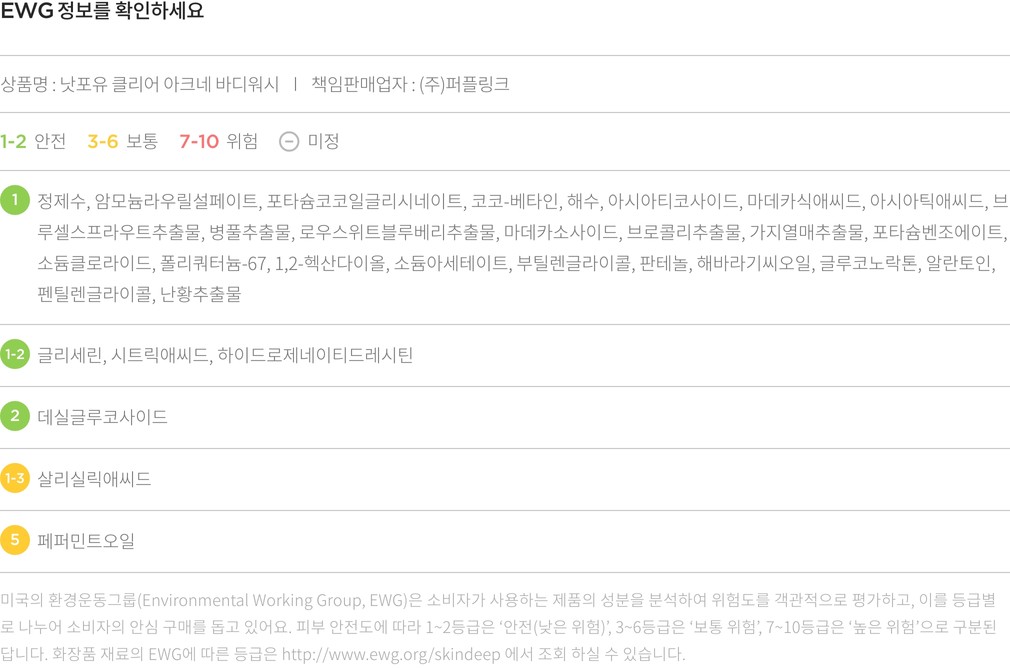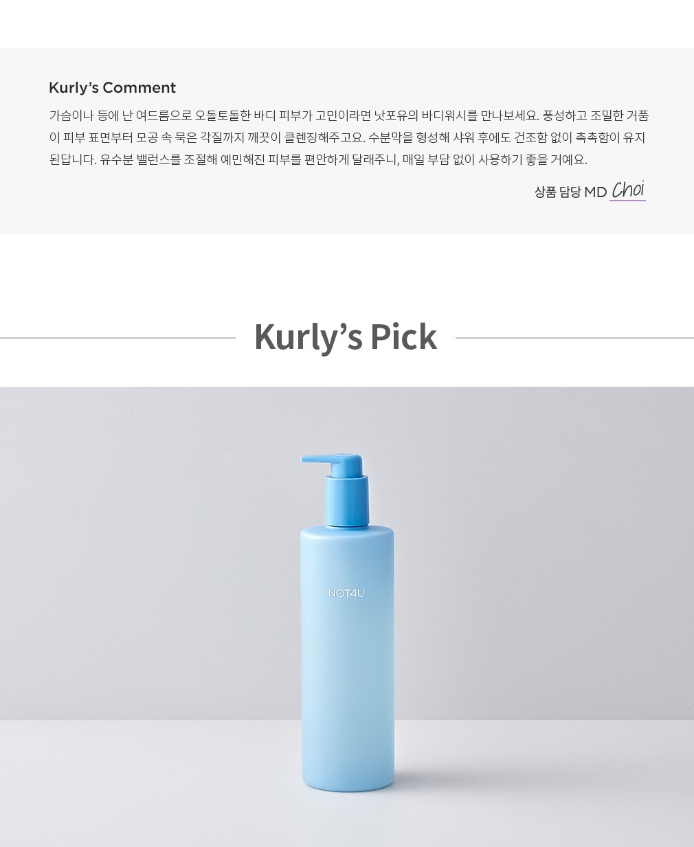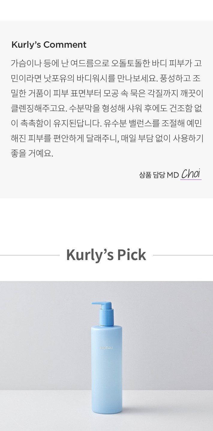 ・ 특징:산뜻하고 순한 사용감의 바디워시입니다. 피부 진정 효과와 함께 피부를 매끈하게 가꿔줘요.