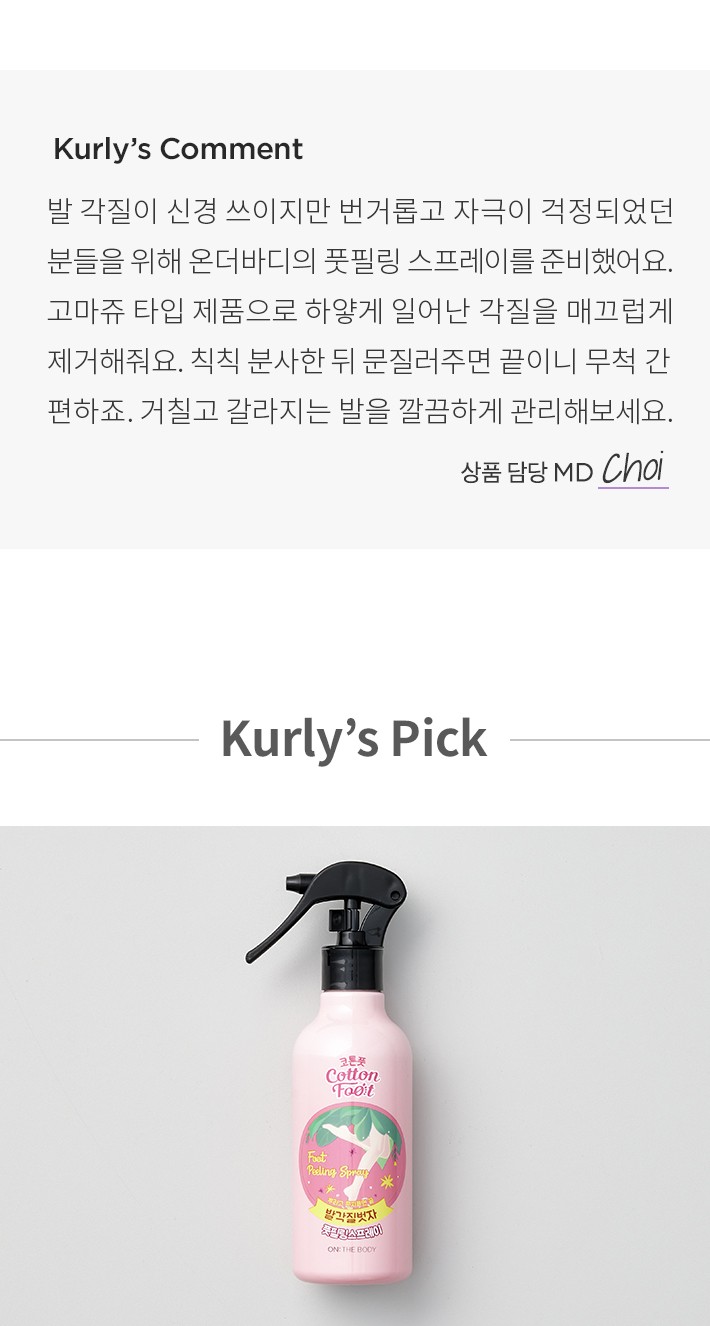 ・특징 :발 각질을 부드럽게 제거해주는 필링 스프레이입니다.