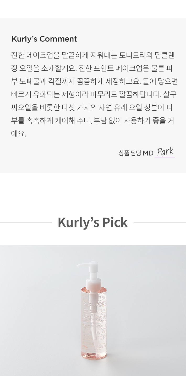・ 특징:메이크업과 피부 노폐물을 말끔하게 녹여줘요. 세안 후에도 건조함 없이 촉촉하게 마무리됩니다.