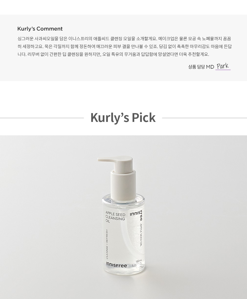 ・ 특징:사과씨오일을 함유한 순한 포물러가 당김 없이 촉촉한 클렌징을 도와줘요.