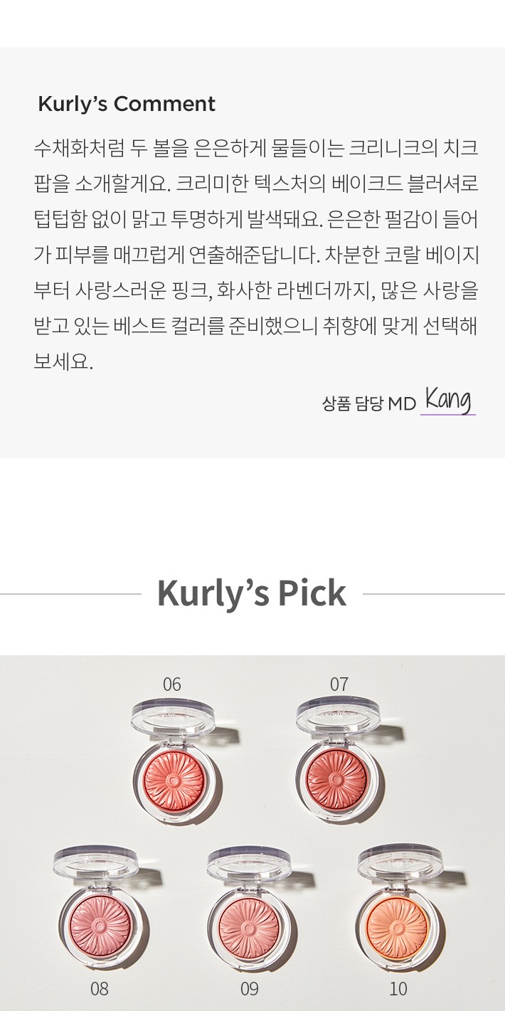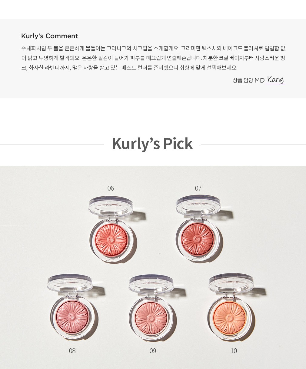 사용법・브러쉬로 가볍게 쓸 듯이 발라주면 치크팝 특유의 맑은 수채화 느낌을 잘 낼 수 있어요.