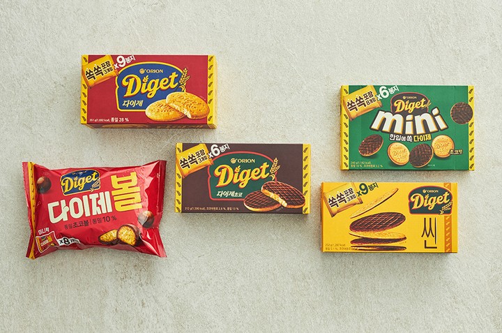 오리온의 다이제 쿠키는 세대를 뛰어넘어 오랜 기간 사랑을 받아온 장수 과자이죠. 지금 만나 볼 제품은 한 번 먹기 좋은 양의 다이제를 소포장에 쏙쏙 담아 든든하게 완성한 다이제 쏙쏙포장 5종입니다. 고소함 가득 도톰한 오리지널 비스킷부터 동글동글 초코볼,얇고 바삭한 초코 씬까지,그 종류도 무척 다채로운데요. 모양이며 두께며 저마다의 매력을 지녔으니 취향에 맞게 선택해 즐겨 보세요.