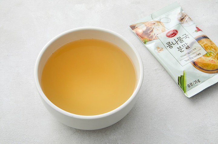 이렇게 활용하세요?콩나물국 분말 1포(1~2인분) 기준,물 800g을 사용하세요. 분말을 물에 잘 섞어 준 뒤 준비한 재료를 넣고 끓여 주세요.