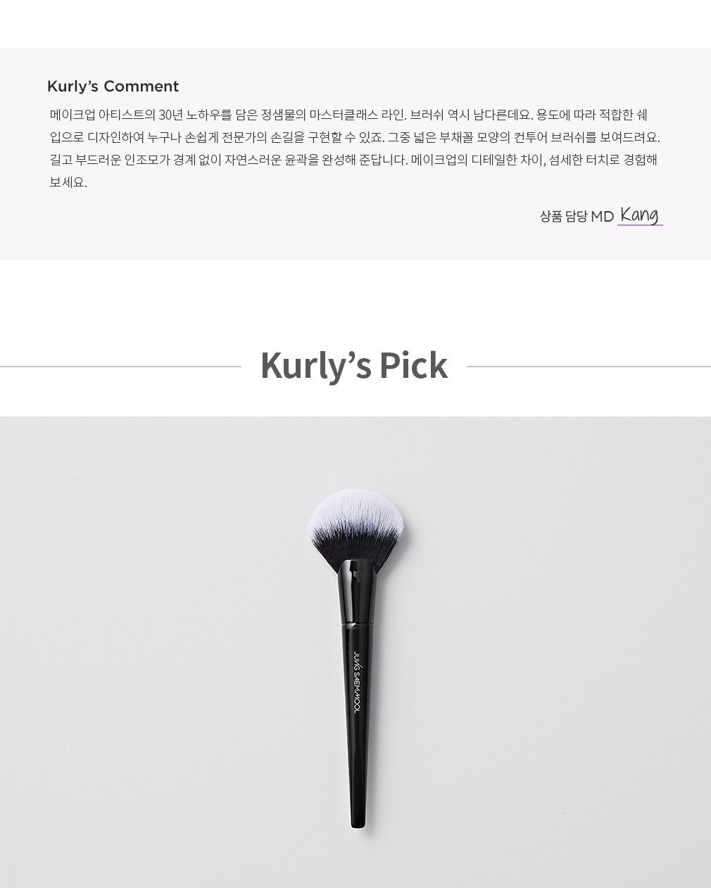 ・ 특징:넓은 부위도 한 번에 쓸어내기 좋은 부채꼴 모양의 브러쉬예요.