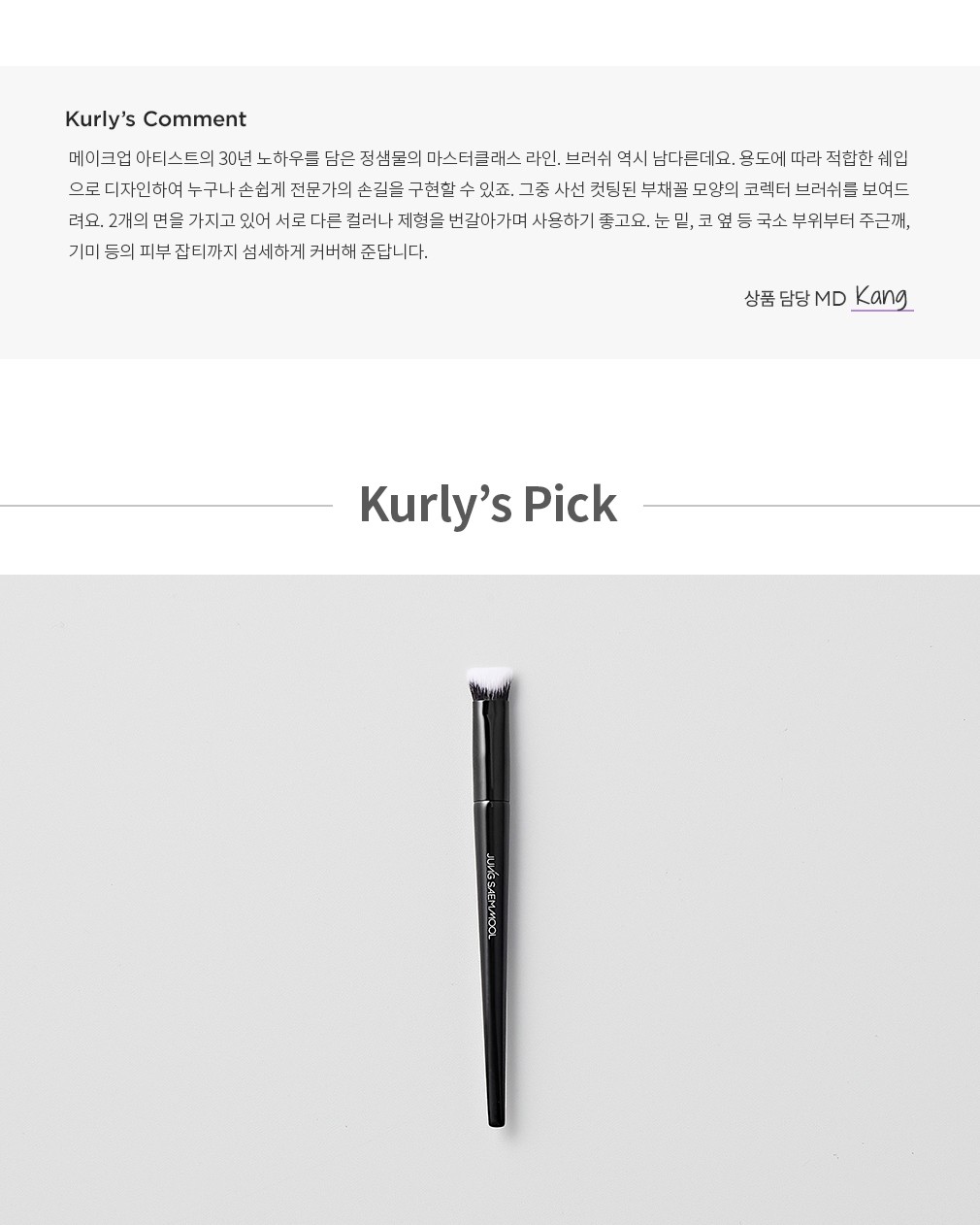・ 특징:얇고 견고하게 피부 결점을 가려주는 브러쉬입니다. 사선으로 컷팅된 2개의 면으로 활용도가 높아요.