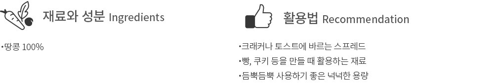 ・특징:알갱이 없이 땅콩을 부드럽게 갈아 완성한 크리미 피넛버터예요.