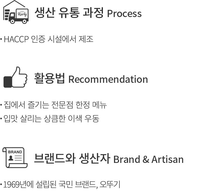 종잇장처럼 얇고 넓은 면발이 특징인 히모카와 우동은 일본 군마현의 특산물로 유명한데요. 우동 전문점에서만 맛볼 수 있어 아쉬웠던 분들을 위해 오뚜기에서 간단한 조리로 완성하는 히모카와 우동을 준비했어요. 건면이 아닌 생면을 사용해 특유의 씹는 맛을 그대로 구현했고요. 짭짤한 가쓰오소스에 제주산 청귤을 더해 상큼한 풍미까지 흠뻑 녹였답니다. 매끄러운 면발에 소스를 푹 적셔 특별한 한 끼를 누려 보세요.