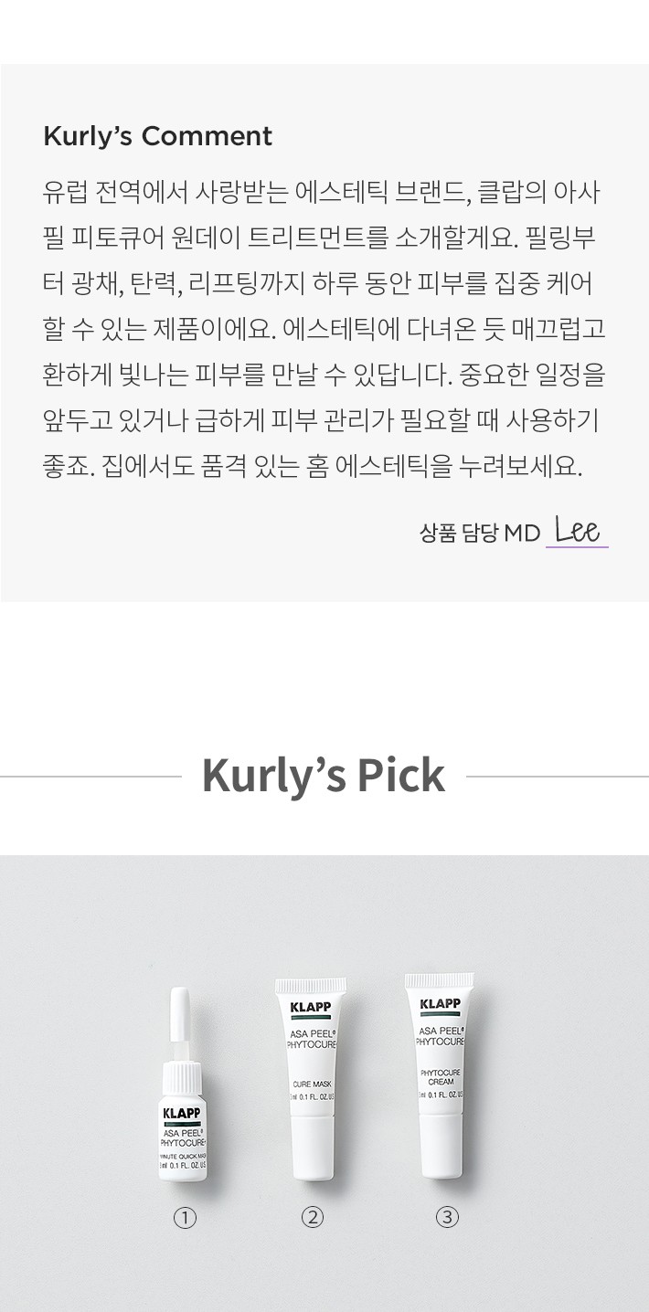 아사필 피토큐어 원데이 트리트먼트・ 구성:①STEP 1 원 미닛 퀵 마스크,②STEP 2 큐어 마스크,③STEP 3 픽토큐어 크림