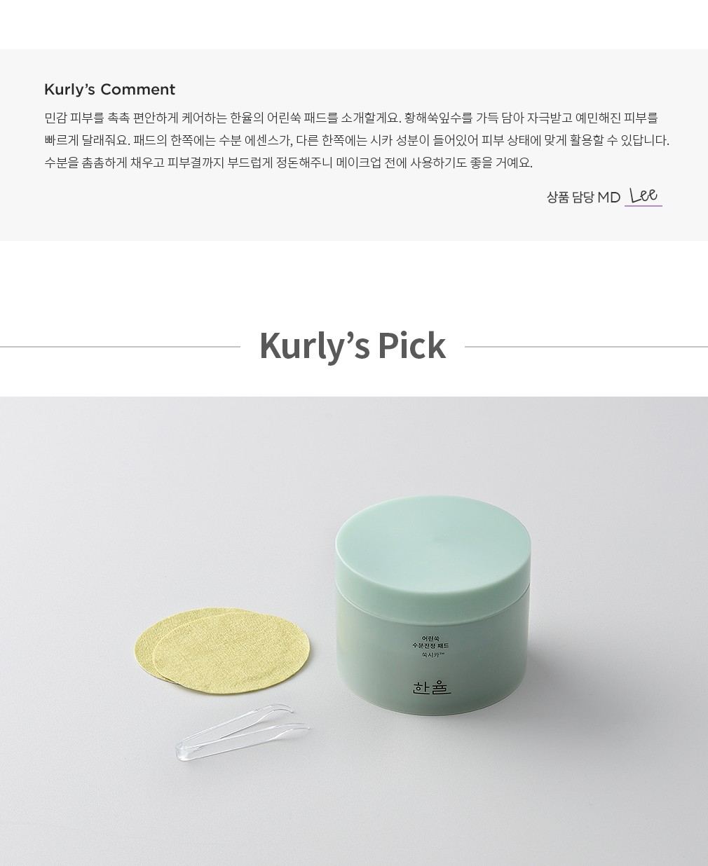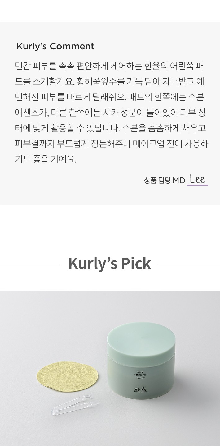 ・ 특징:예민해진 피부 진정과 수분 공급을 돕는 패드입니다.