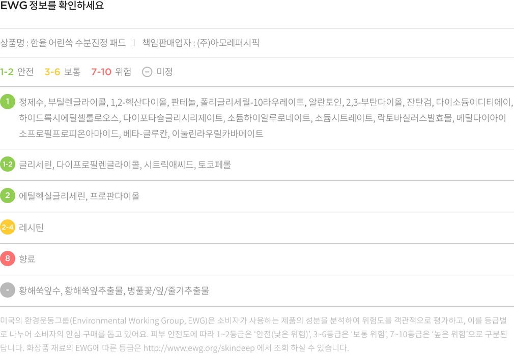 사용법 1. 세안 후 진정이 필요한 부위에 패드를 올려두고 5-10분간 휴식을 취하세요.