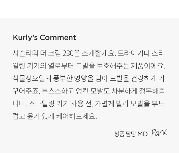 ・ 특징:열로부터 모발을 보호하고 건강하게 케어하는 헤어 크림입니다.