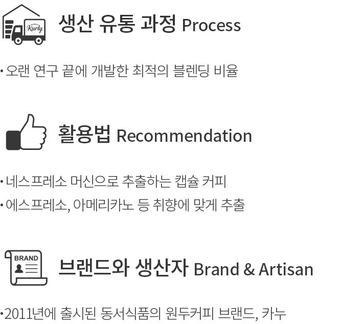 ・특징:스모키한 향미가 진한 인상을 남기는 커피입니다. 묵직한 풀 바디감과 카카오의 쌉싸름한 향미가 훌륭한 밸런스를 이룹니다.