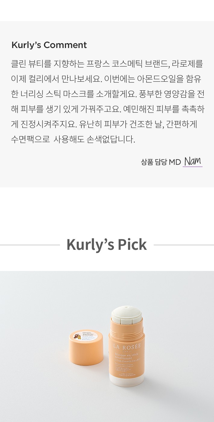 ・ 특징:풍부한 영양과 수분을 전하는 스틱형 마스크입니다. 달콤한 아몬드 향을 담았어요.