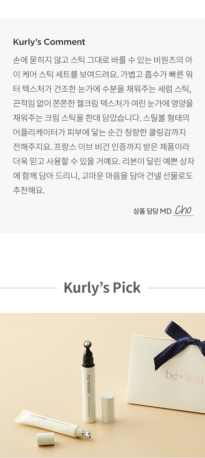 ・ 특징:풍부한 영양감을 전해주는 아이 크림 스틱입니다. 어플리케이터를 탑재해 마사지 효과도 누릴 수 있어요.