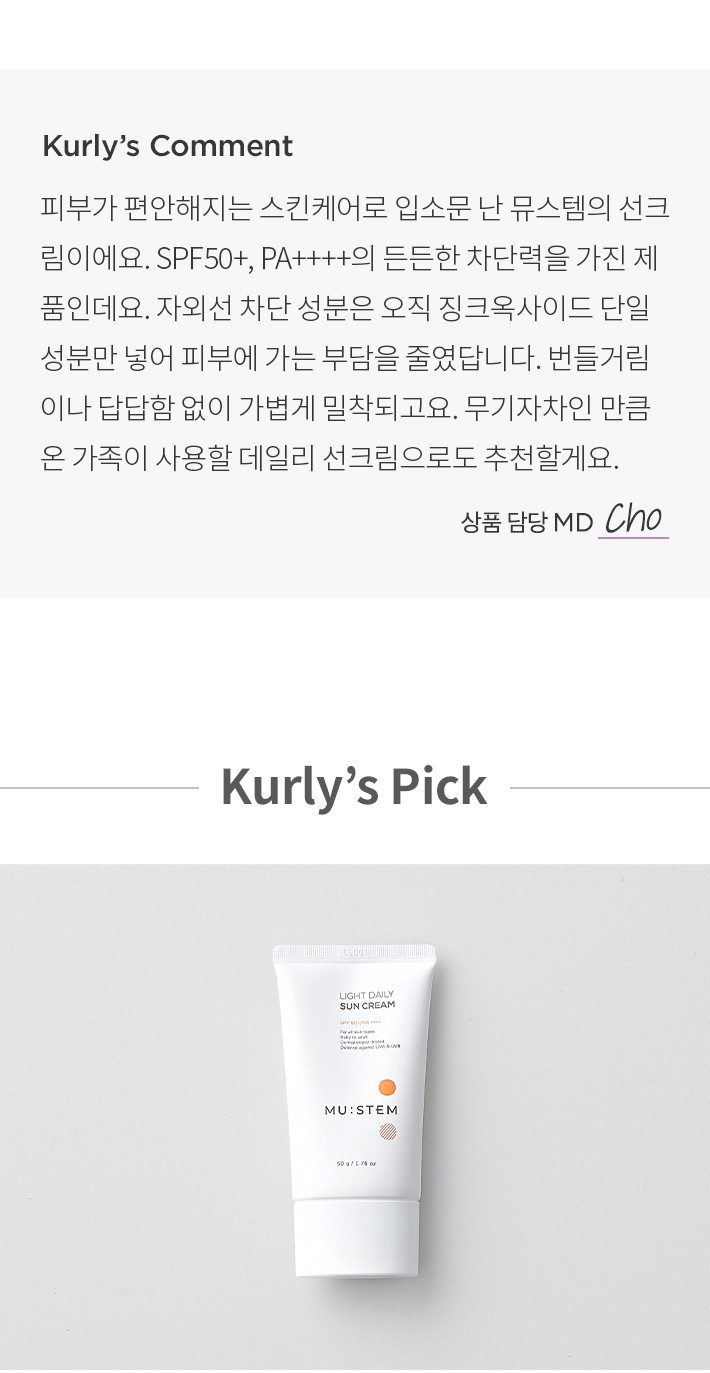 ・ 특징:SPF 50+,PA++++의 자외선 차단력을 가진 선크림이에요. 무기자차지만 얇고 가볍게 밀착됩니다.