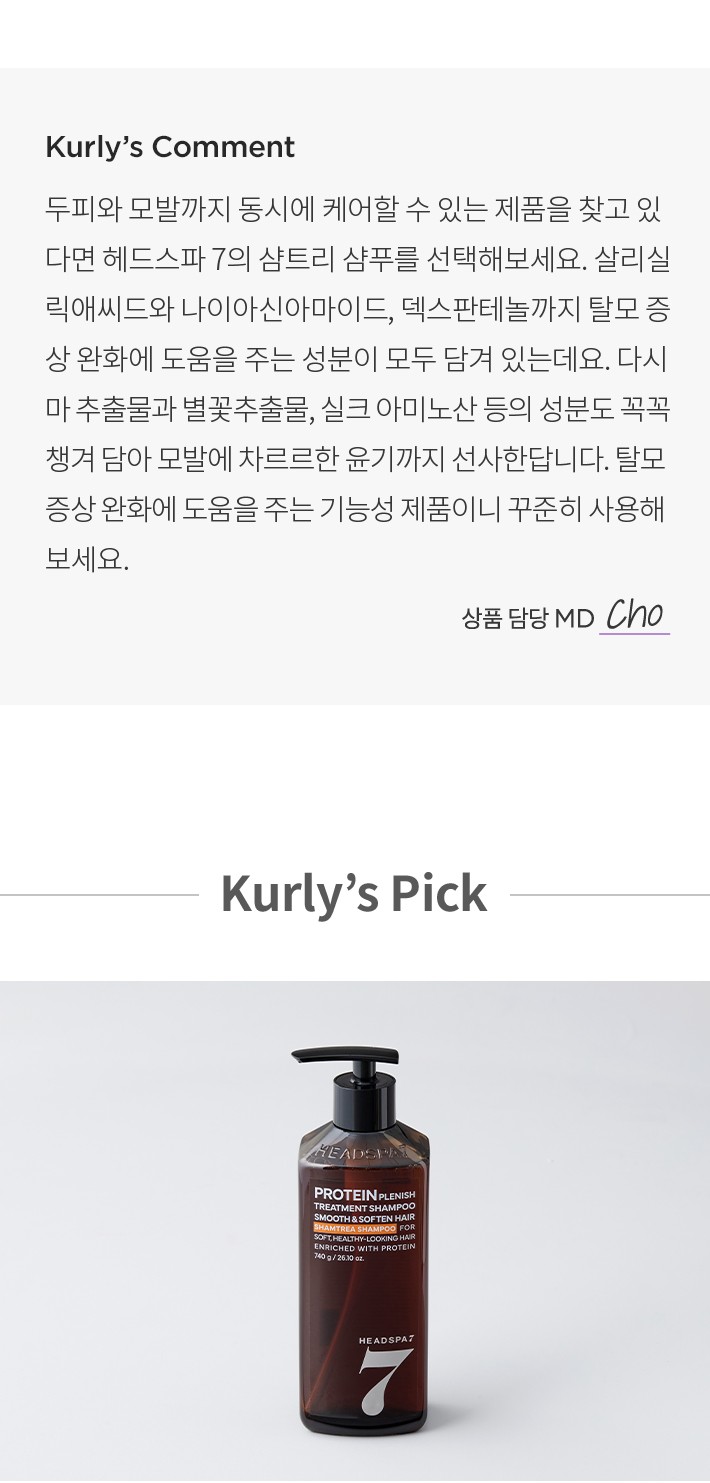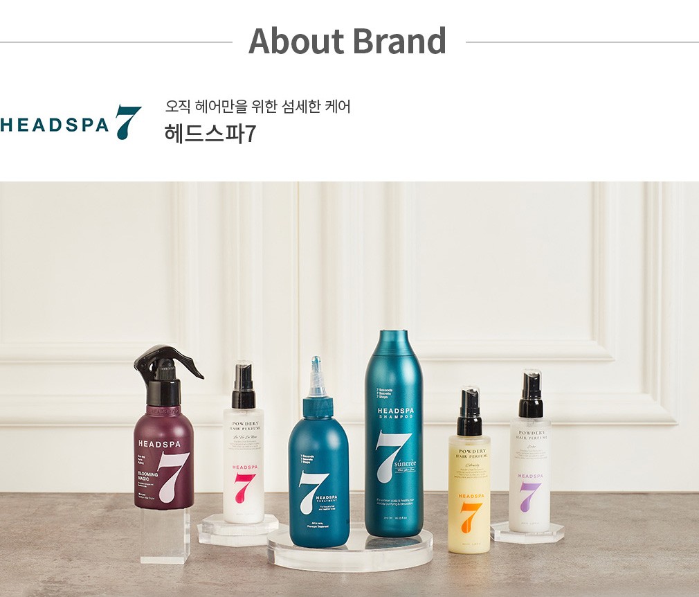 헤드스파7은 '헤어도 피부처럼'이란 슬로건과 함께 건강하고 생기 있는 헤어 케어를 위한 제품을 선보입니다. 헤드스파7의 자부심과 기술력은 브랜드명에서도 엿볼 수 있어요. '7성급 헤어를 갖다'라는 의미로,뷰티 살롱의 전문 케어를 집에서도 쉽게 받도록 하자는 남다른 목표로부터 시작되었죠. 헤드스파7은 이 목표를 위해 연구하며 노하우를 담은 제품을 보여줍니다. 눈여겨볼 특징 중 하나는 앰플 투 크림,크림 투 워터와 같은 독특한 제형 변화인데요. 이는 각 제품의 효율을 가장 극대화하기 위한 치열한 고민의 결과물이랍니다. 이런 노력으로 탄생한 제품력은 경험한 고객들의 신뢰로 더욱 널리 알려지고 있습니다.