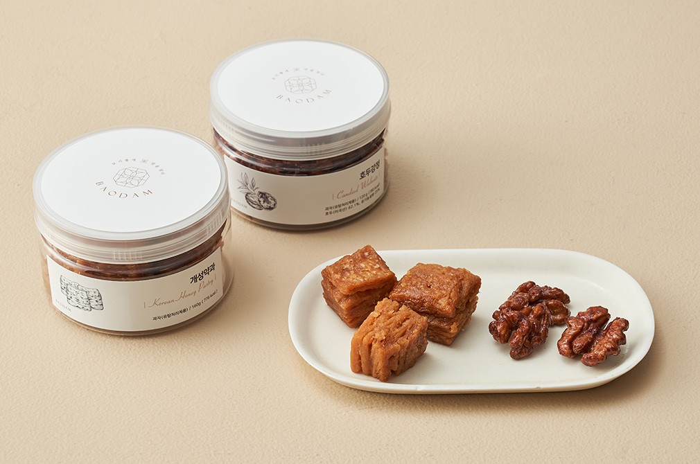 프리미엄 한식 디저트를 선보이는 바오담이 정성껏 만든 개성약과&호두강정 선물세트를 만나 보세요. 겹겹이 쌓인 결이 돋보이는 개성약과와 바삭한 식감이 매력적인 호두강정을 알차게 꾸려 담았답니다. 시간과 정성으로 세심하게 만들어 눅눅하지 않고 바삭한 식감이 오롯이 살아 있어요. 어른과 아이가 함께 즐기는 간식으로도 참 좋을 거예요. 깔끔한 상자에 담아 보내드리니 마음을 전하는 선물로 선택해 보세요.