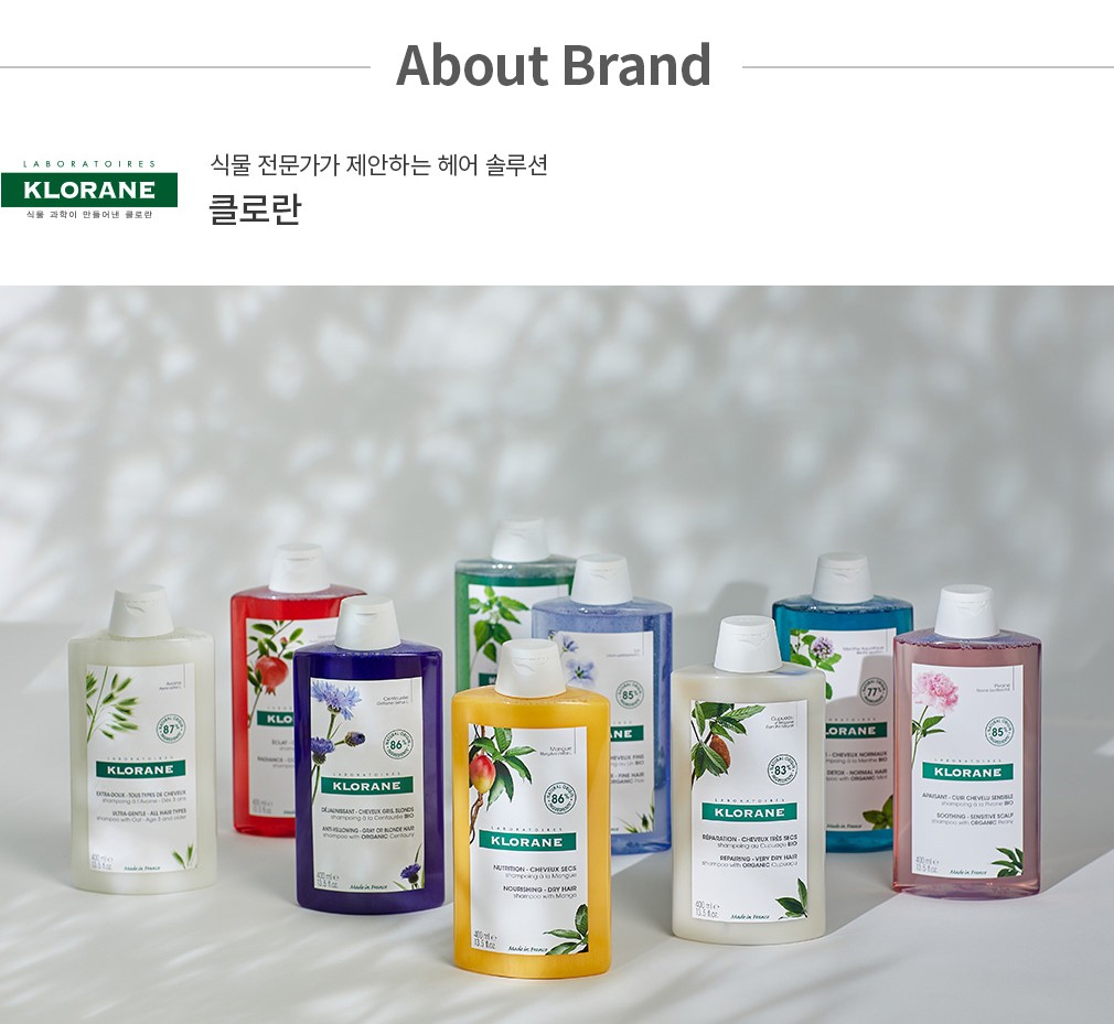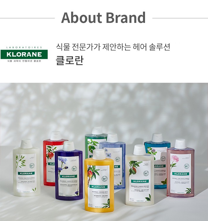 클로란은 식물 전문가들의 오랜 연구를 바탕으로 다양한 헤어 고민에 맞는 솔루션을 제안합니다. 식물의 품종 선정부터 재배,수확,추출에 이르기까지 모든 과정을 안전하게 수행하며,꼼꼼하게 관리하는 보태니컬 엑스퍼티즈 시스템을 실시하고 있죠. 또한,클로란은 포장,패키지 등 제품 생산의 전 과정에서 지속 가능한 클린 뷰티를 지향하고 있습니다. 나아가 비영리재단인 클로란 식물 재단을 통해 멸종 위기에 처한 식물들을 보호하고 연구하며 자연이 우리에게 선사한 아름다운 유산을 지켜나가기 위해 노력하고 있죠. 그 결과,프랑스 약국 화장품 헤어케어 부문에서 5년 연속(2016-2020) 1위*를 차지하며 많은 사랑을 받고 있습니다.