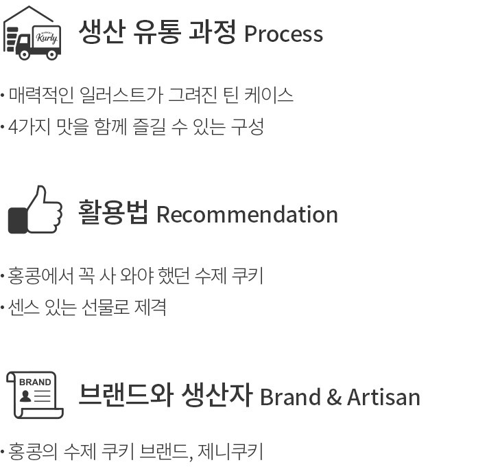 ?특징:버터 플라워,쇼트 브레드,커피,레이즌 오트 등 4가지 맛으로 구성되어 있습니다.