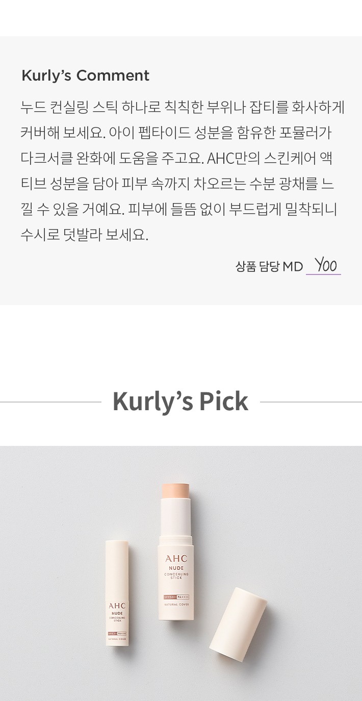 ・ 특징:피부 결점 커버는 물론 다크서클 완화에도 도울을 줄 스틱형 컨실러예요. 피부에 부드럽게 밀착되며,광채가 은은하게 나요.