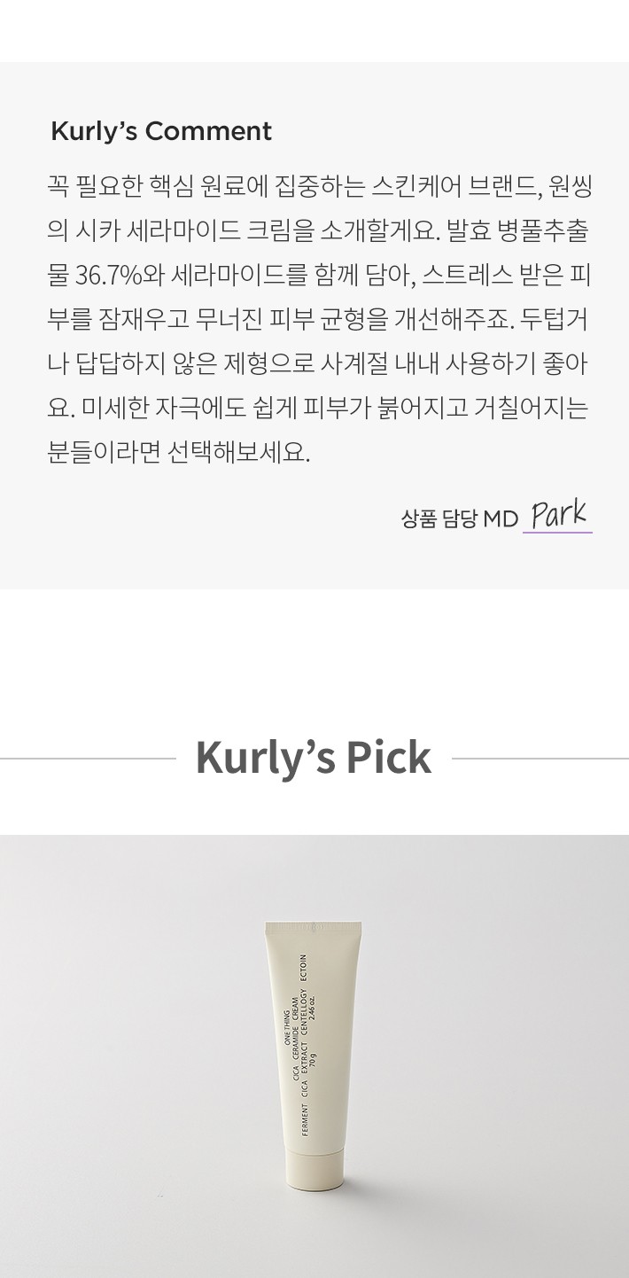 원씽은 피부에 필요한 단 하나의 원료만를 엄선하여 제안합니다. 불필요한 성분과 거추장스러운 패키지를 모두 뺀 단순한 제품으로 원료 자체에 집중하죠. 소비자들이 내가 어떤 제품을 사용하고 있고,이 제품이 왜 필요한 건지 정확하게 알게 하는 것이 원씽의 가장 중요한 가치 중 하나입니다. 피부와 소비자를 위한 진정성을 투명하게 담아낸 원씽의 제품들을 컬리에서 만나보세요.
