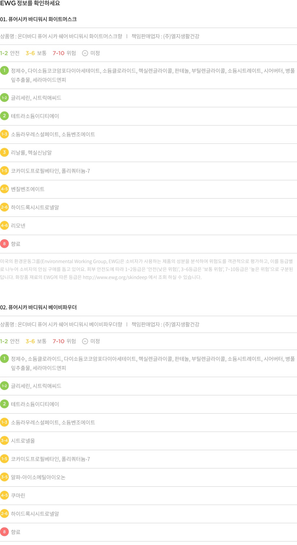 01. 퓨어시카 바디워시 화이트머스크 ・ 중량:1통(900g)