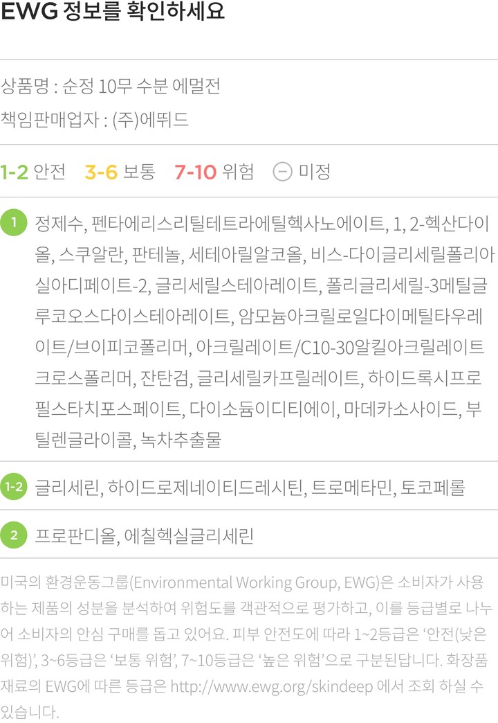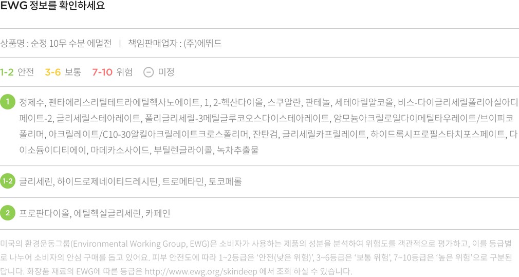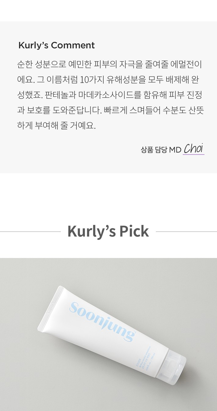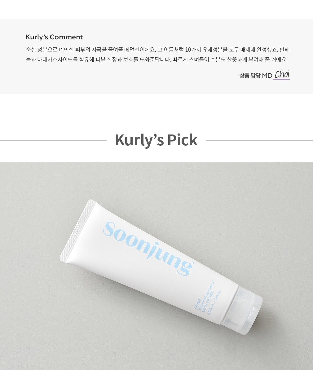 ・ 특징:꼭 필요한 성분으로만 이루어진 에멀전이에요. 수분 공급은 물론 피부 진정을 도와줘요.