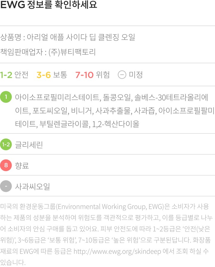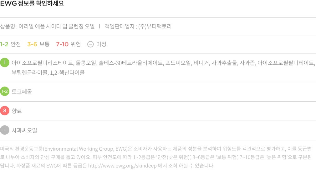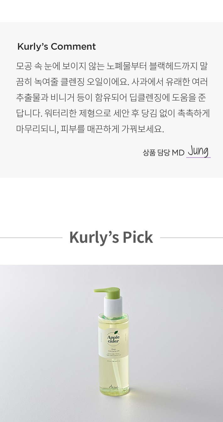 ・ 특징:사과씨오일과 비니거 등이 함유되어 메이크업부터 피지와 블랙헤드까지 말끔하게 제거해줄 클렌징 오일이에요.