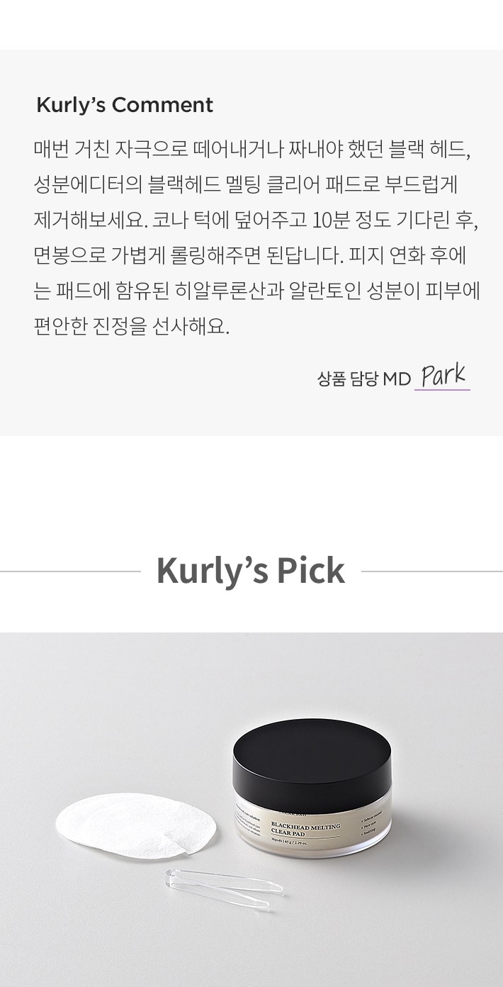 ・ 특징:거뭇한 노폐물과 피지를 부드럽게 녹여낼 수 있는 패드입니다.