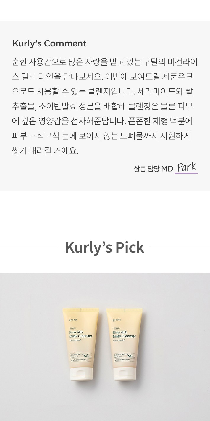 Tip. 팩으로 사용 시 마른 얼굴에 도톰히 펴 바른 뒤 약 1분위 씻어내세요.