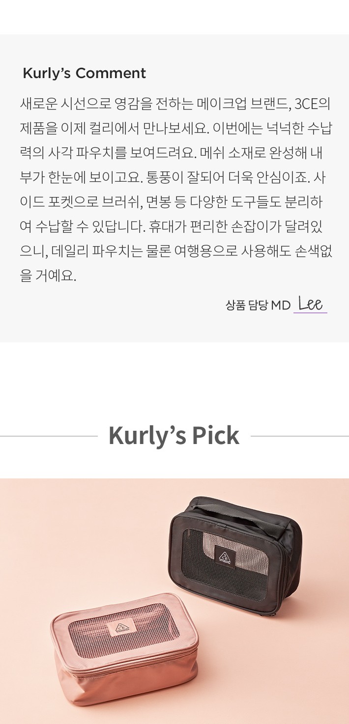 ・ 특징 :넉넉한 수납력을 갖춘 메쉬 사각 파우치입니다.