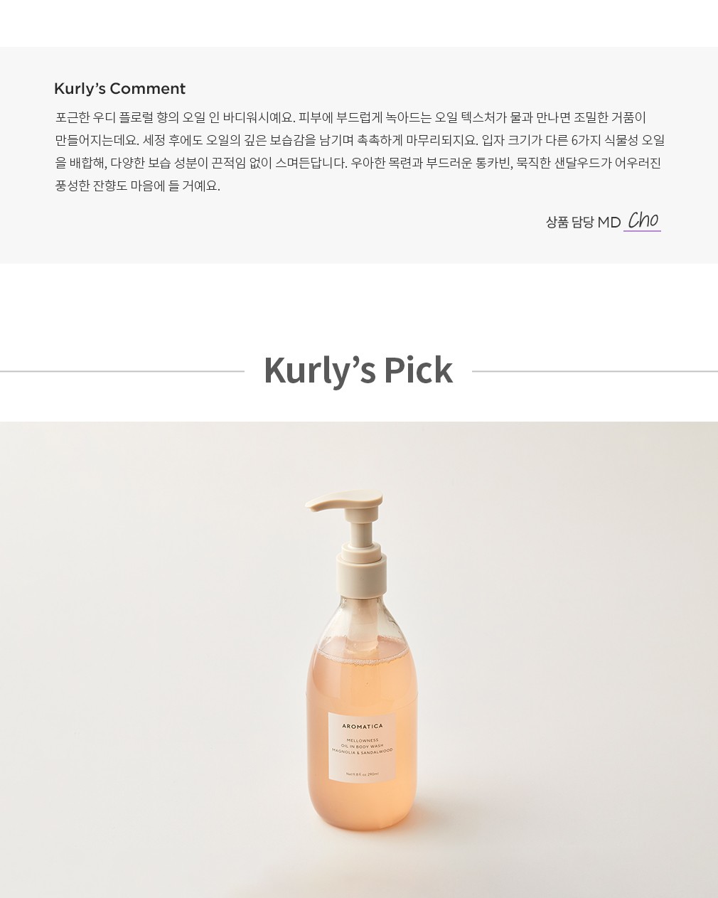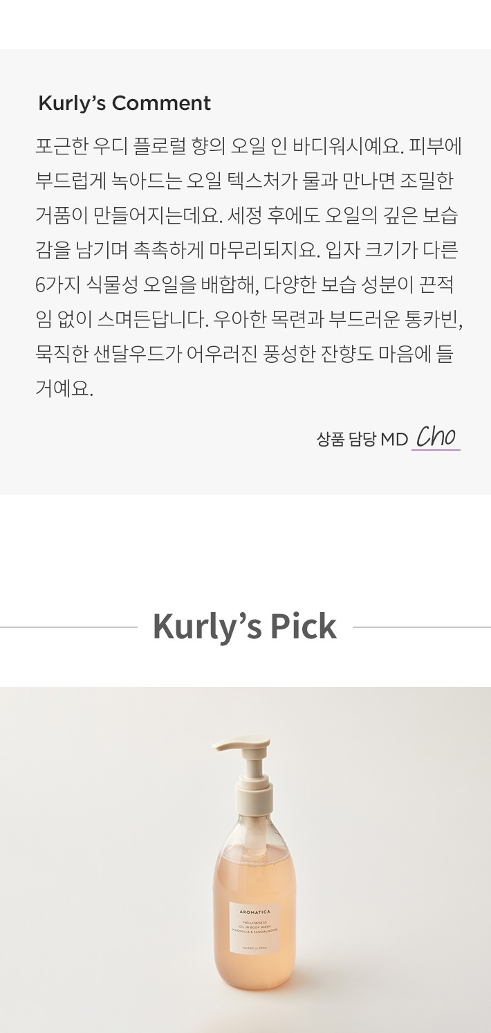 추천 루틴・ 동일한 향기의 아로마티카 바디크림 혹은 바디오일과 함께 사용해 보세요. 한결 깊고 진한 잔향을 누릴 수 있어요.