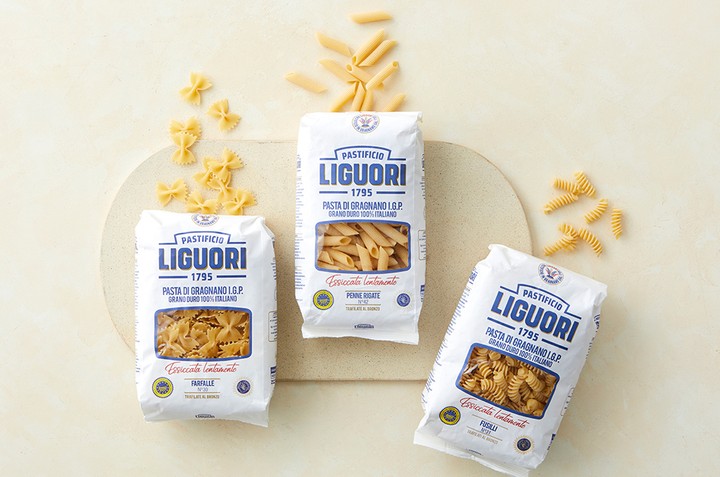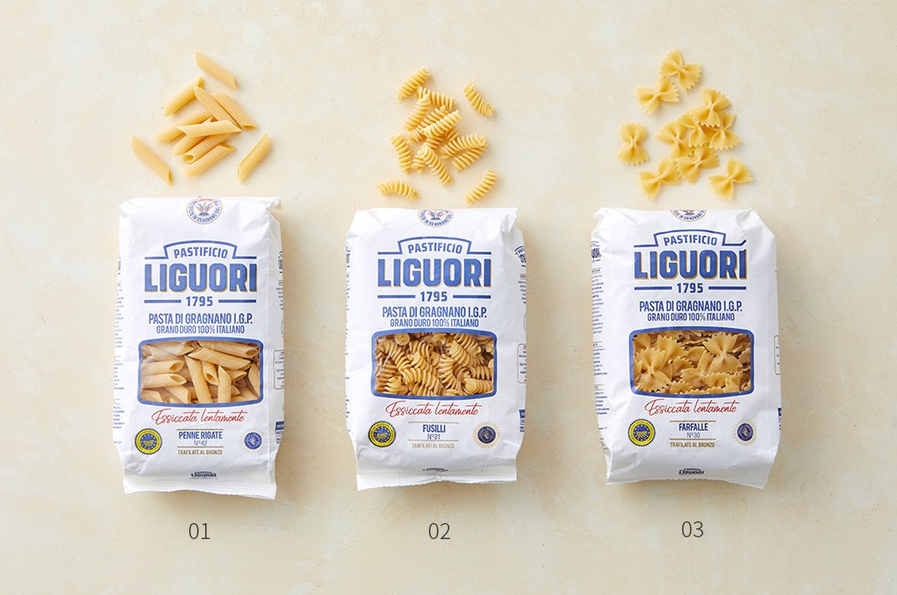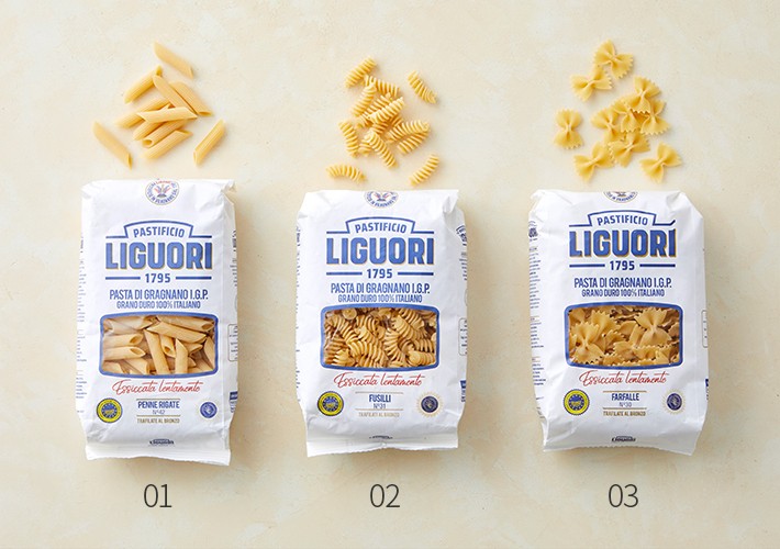 이탈리아 그라냐노시에서 시작되어 220년간 그 명성을 이어오고 있는 파스타 브랜드,리구오리를 소개할게요. 지금 소개할 제품은 지리적 보호 표시 인증까지 획득해 더욱 안심하고 즐길 수 있는 파스타예요. 100% 듀럼밀만을 사용해 쫄깃하고 탄력있는 식감을 느낄 수 있는 것은 물론이고요. 소스가 면에 잘 배어들 수 있도록 청동 틀로 거칠게 뽑아냈어요. 이렇게 뽑아낸 면을 저온에서 천천히 건조해 맛과 향을 오롯이 유지했죠. 나선형 모양의 푸실리부터 독특한 나비 모양의 파르팔레까지 3가지 종류를 준비했으니 취향에 따라 골라보세요.