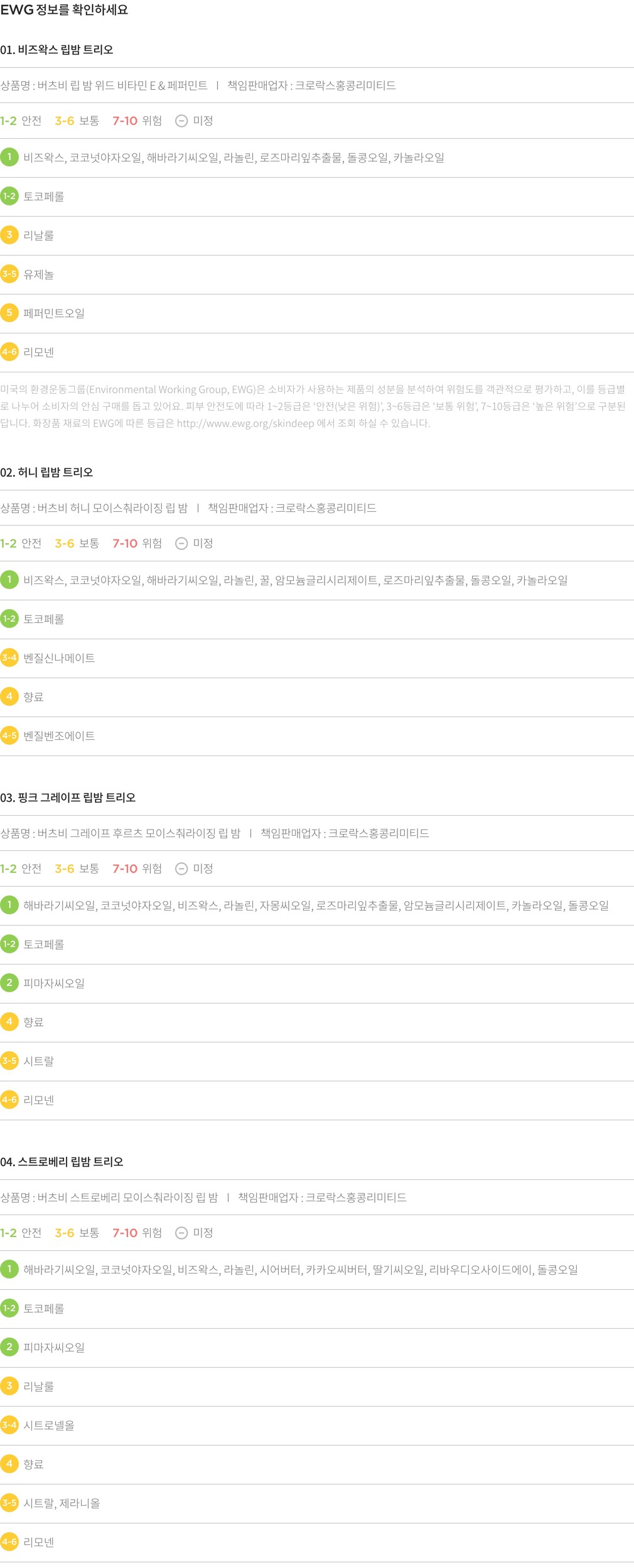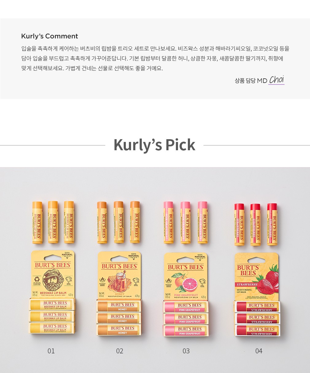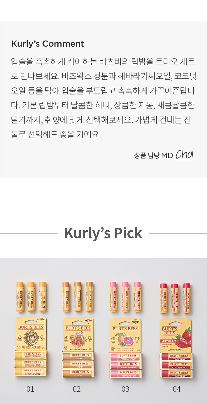 01. 비즈왁스 립밤 트리오・ 개수:1세트(4.25g X 3개입)