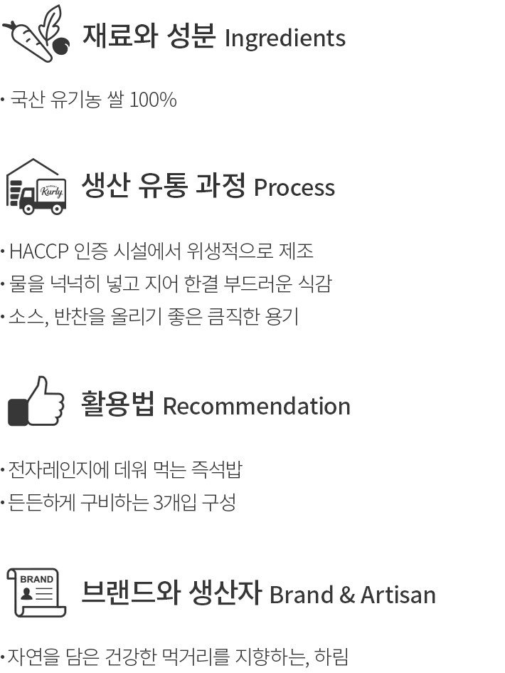 푸디버디와 함께 아이들의 식사 시간을 맛있고 즐겁게 꾸며 보세요. 엄선한 식재료로 만든 아이의 입맛에 꼭 맞는 간편식을 선보여요. 이번에는 우리 아이에게 안심하고 건넬 수 있는 유기농 쌀밥을 준비했어요. 국산 유기농 쌀만 사용한 것은 물론,밥을 지을 때 물을 넉넉히 넣어 한결 부드러운 식감을 자랑하지요. 용기가 큼직한 편이라 짜장이나 카레 등 소스를 올려 주기에도 적합하답니다. 전자레인지에 데우기만 하면 되니,바쁜 일상 중에도 간편하게 우리 아이의 식사를 챙겨 보세요.
