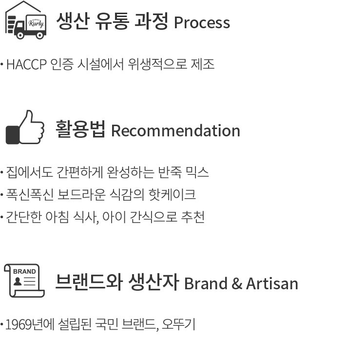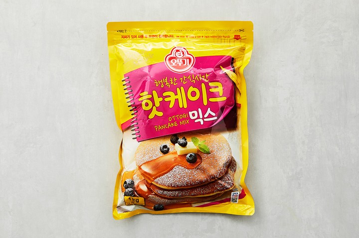 오뚜기의 반죽 믹스로 손쉽게 핫케이크를 만들어보세요. 물과 계란만 준비해 반죽 믹스를 잘 섞어주기만 하면 되는데요. 팬에 노릇하게 구워주면 누구나 좋아하는 폭신폭신 보드라운 식감의 핫케이크가 완성되죠. 간단한 아침 식사나 우리 아이 간식으로 제격이랍니다. 완성된 핫케이크 위에 시럽이나 각종 토핑을 곁들여 풍성하게 즐겨도 좋을 거예요.
