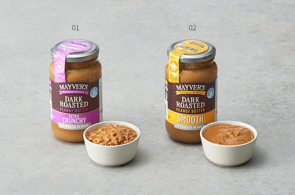 호주의 땅콩버터 전문 브랜드,메이버스의 다크로스트 땅콩버터를 소개합니다. 오직 신선한 땅콩과 천일염만으로 깨끗하게 만든 땅콩버터인데요. 땅콩을 오래 볶아 진한 색을 내고 고소한 풍미를 극대화했답니다. 부드러운 질감이 매력적인 스무스부터 재미난 식감을 자랑하는 엑스트라 크런키까지,2가지 종류를 준비했으니 취향에 따라 선택해 보세요. 평소에 땅콩버터를 즐겨 드시는 분에게 추천해 드릴게요. 바삭하게 구운 빵에 곁들이면 간단하면서도 든든한 아침이 되어줄 거예요.