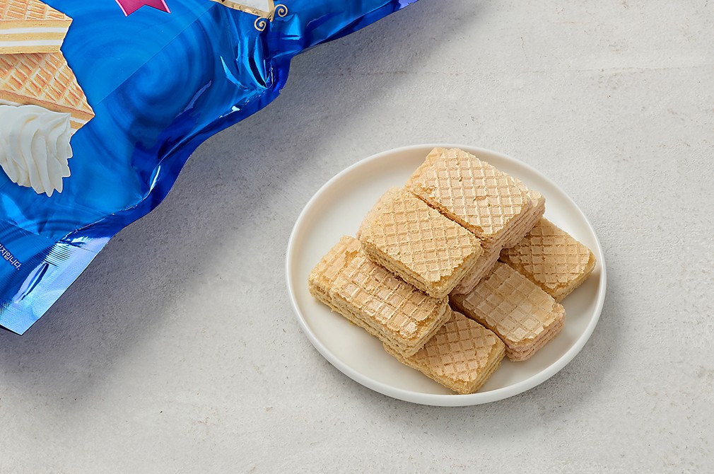 ?특징:부드러운 생크림 맛의 웨하스입니다. 한 입에 쏙 넣어 즐길 수 있는 미니 사이즈예요.