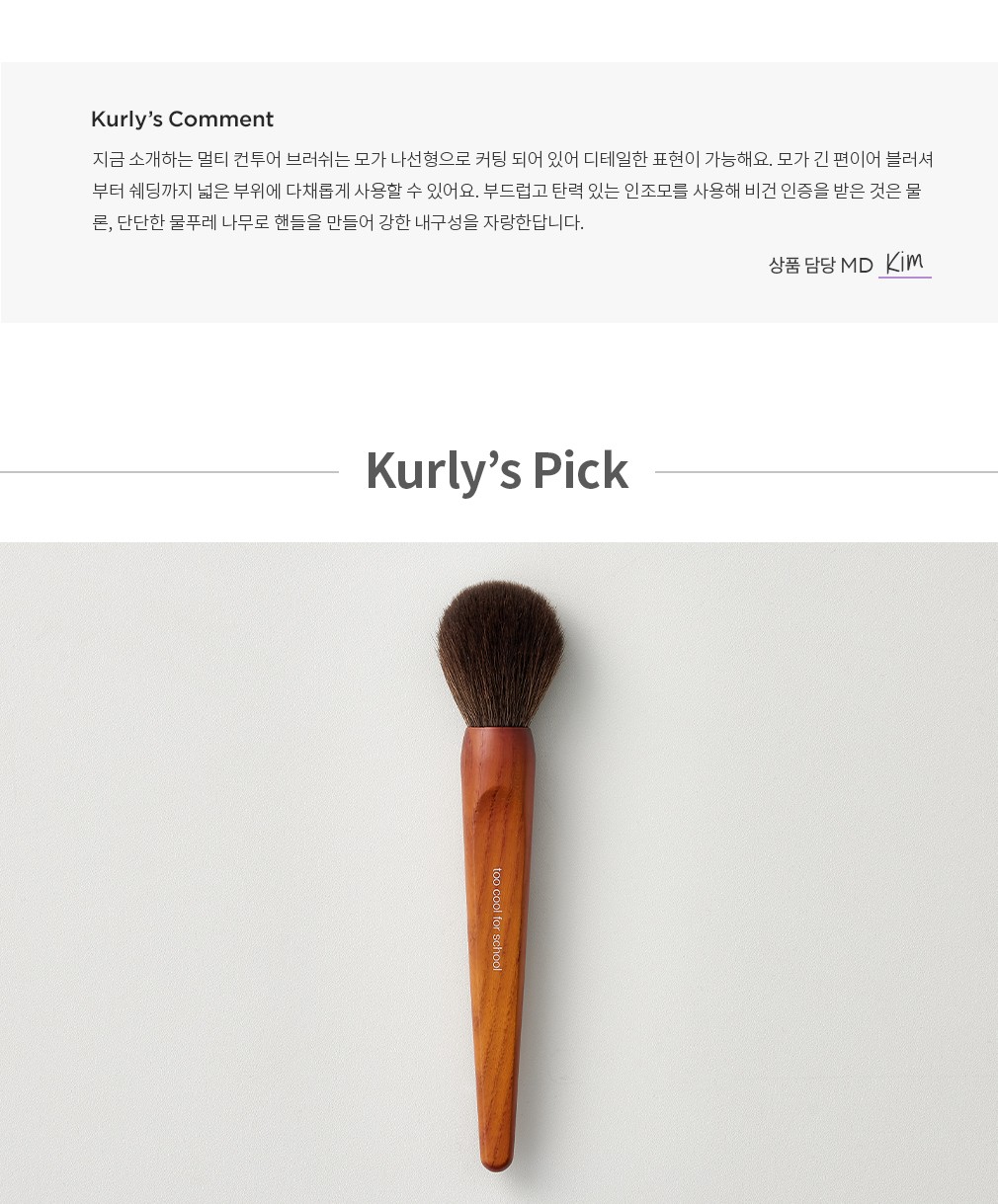 ・ 특징:브러쉬 모가 나선형으로 커팅 되어 있어 블러셔 및 쉐딩을 정교하게 표현해 줍니다. 모 길이가 긴 편이어 턱선 처럼 넓은 부위에 사용하기 좋아요.